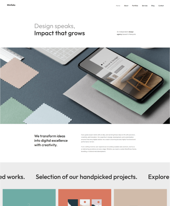 Showcase your work effortlessly with a fast, minimal, and beautifully designed WordPress theme.
